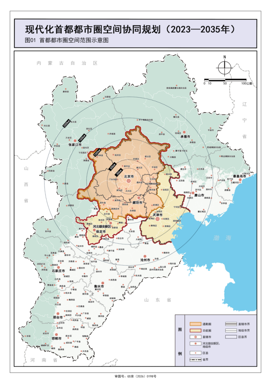 2026年1月22日,世界首个由党中央、国务院批复的都市圈筹画——《当代化都门都市圈空间协同筹画(2023—2035年)》认真获批,这是落实习近平总通知亲身想到、部署、鼓舞的京津冀协同发展国度区域环节计谋的要津举措,亦然时隔五年推出的又一部重磅都门筹画。
