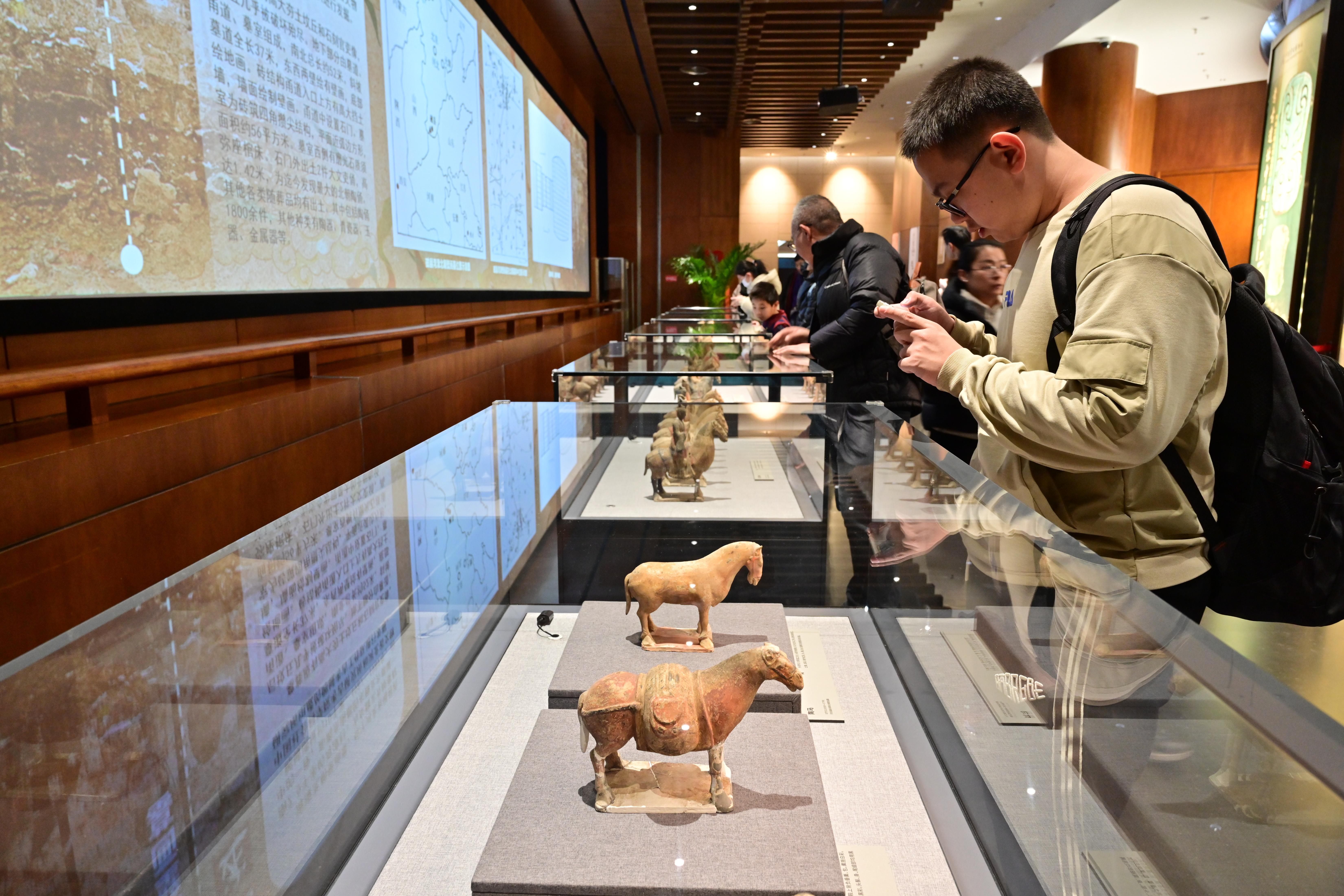 记者郑重到,馆内的“文物探中华:河北磁县湾漳北朝壁画墓出土陶俑展”东谈主气倍儿旺。展柜中,时时彩app官方最新版下载20余件北朝陶俑策马飞驰而来,阵容倾盆,很是吸睛。不雅众李园为每一件文物齐拍了相片,他说,“仔细不雅察,每一匹马、每个东谈主物的口头和细节齐不雷同,这样多马文物集结展示,看得过瘾。”