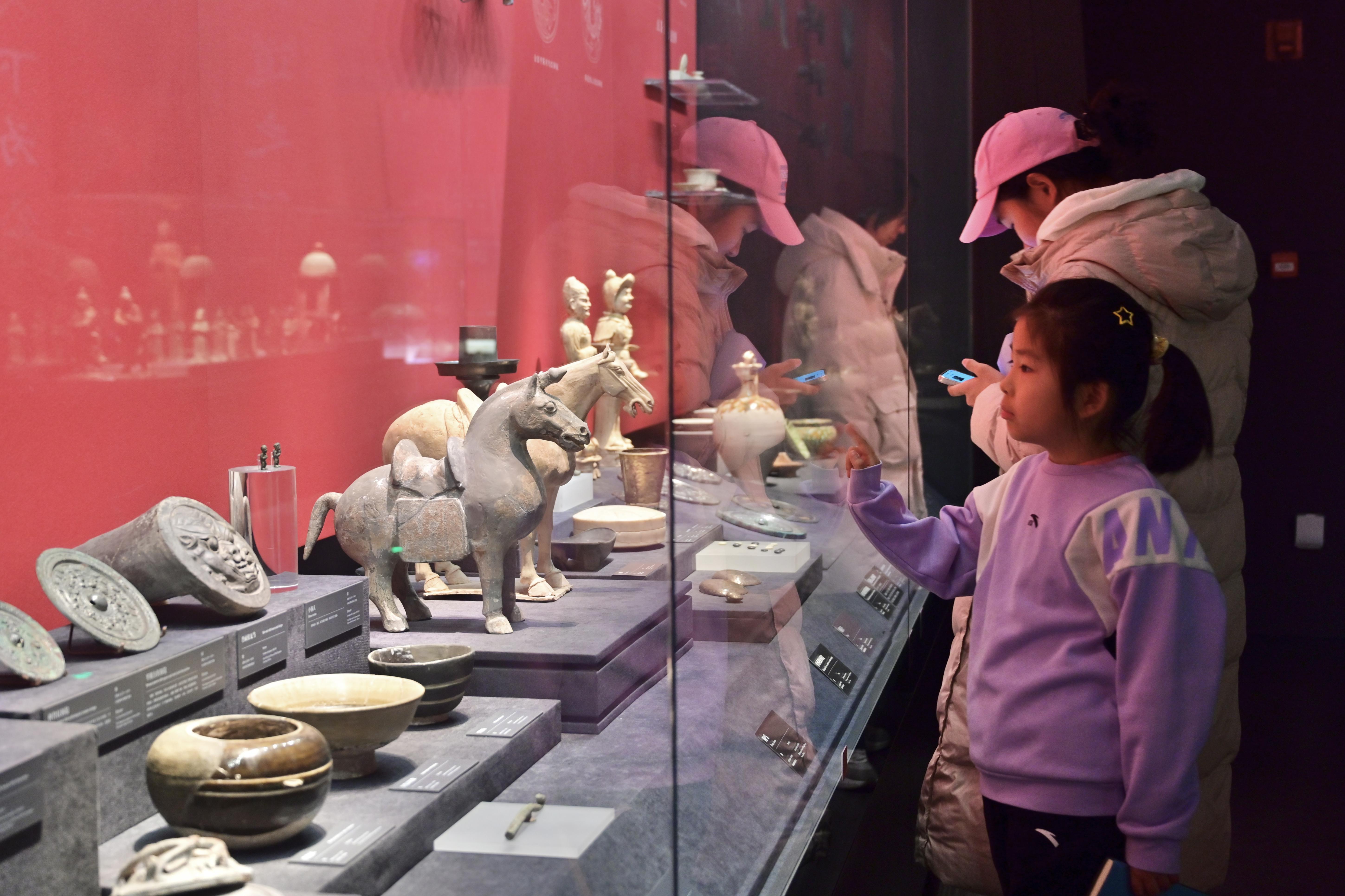 赶巧寒假,青少年景为博物馆参不雅的主力。“看,这两匹马是并吞个场合出土的,但画风却不太雷同!”在博物馆四层展厅,小不雅众张瑾发现了海报上的主角——出土于河南偃师杏园唐墓的陶马,与1月上新的另一匹陶马比肩展示。考古学家在河南偃师杏园唐墓共发掘墓葬近70座,本事逾越初唐至晚唐,随葬器物种类蕃昌。两匹同出一源却画风迥异的陶马比肩展示,让不雅众直不雅赏玩到唐代多元化的审盛情趣。